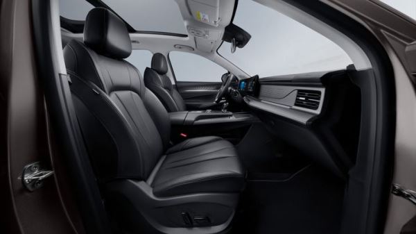 Интерьер флагманской модели отличается продуманностью и вниманием к деталям. В отделке использованы перфорированная кожа, декоративные вставки с имитацией текстуры дерева, мягкие поверхности и физические кнопки для управления важными функциями.