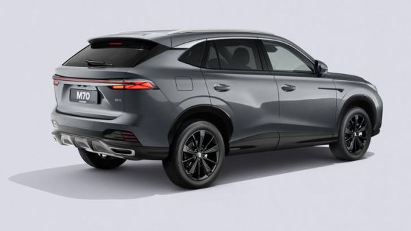 Дизайн экстерьера «Москвич М70» определяют надежные и проверенные решения: высоко расположенная яркая LED оптика c противотуманными фарами, классические дверные ручки, встроенная антенна и выразительный спойлер задней двери. Дополняют харизматичный образ карбоновые вставки порогов и черные 19-дюймовые легкосплавные колесные диски.