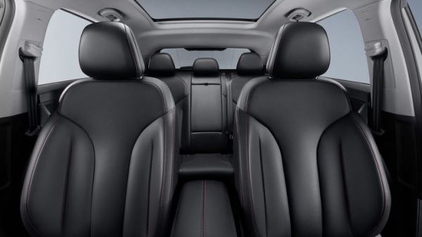 Для интерьера доступны две цветовых схемы: классический «черный низ, светлый верх» и коричневая обивка сидений и элементов салона в сочетании с черным потолком. В салоне особо выделяются сбалансированный стиль, высокое качество материалов и внимание к деталям: рулевое колесо с обивкой из микрофибры, физические кнопки для часто используемых функций под экраном мультимедиа и напольная педаль акселератора.