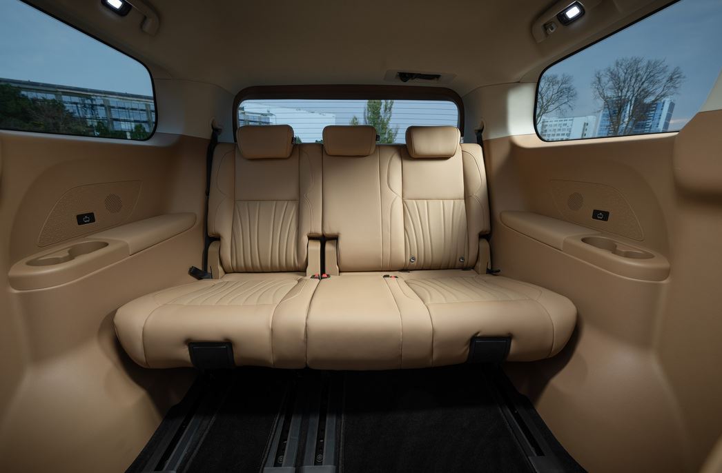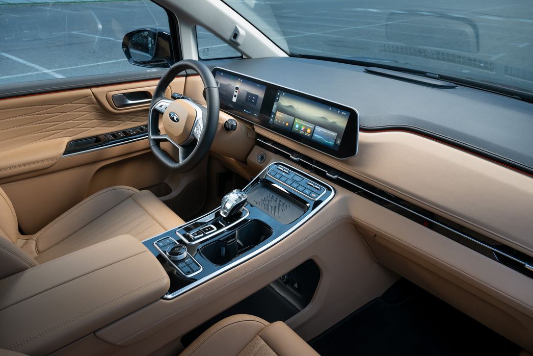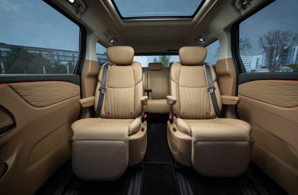По уровню оснащения RF8 если и проигрывает M8 от GAC, то не сказать что сильно. Судите сами: передние и задние парктроники, камеры в круг, панорамная крыша и люк, задние боковые двери с электроприводом, великолепная аудиосистема, трехзонный климат-контроль, электрорегулировки всех сидений, подогрев и вентиляция первого и второго ряда, массаж для пассажиров второго ряда, адаптивный круиз-контроль, Bluetooth, USB-порты на первом и третьем ряду, встроенные столики в спинке передних кресел, амбиентная подсветка. Внешние зеркала с электроприводом оснащены функцией наклона при включении заднего хода, фронтальные и боковые «эирбеги» водителя и переднего пассажира, а также боковые шторки безопасности…