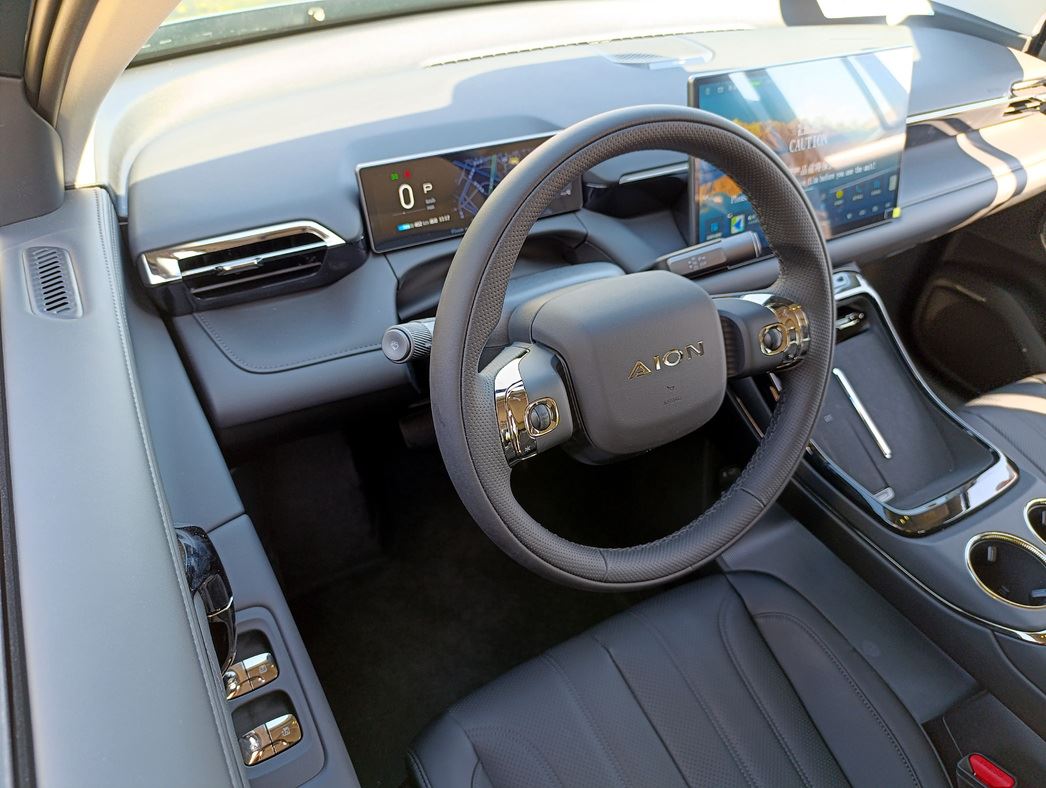 Такому поведению есть объяснение. Снаряженная масса машины — 1780 кг. А мощность электромотора, расположенного на передней оси — 204 л.с. (есть версия на 224 л.с.). Поэтому и разгон не назвать спортивным. Хотя по паспортным данным первую «сотню» кроссовер «разменивает» за 8 секунд. Но оставим спортивные амбиции, поскольку корость для Aion V — не главное. Главное — запас хода. А он приличный: 750 км.