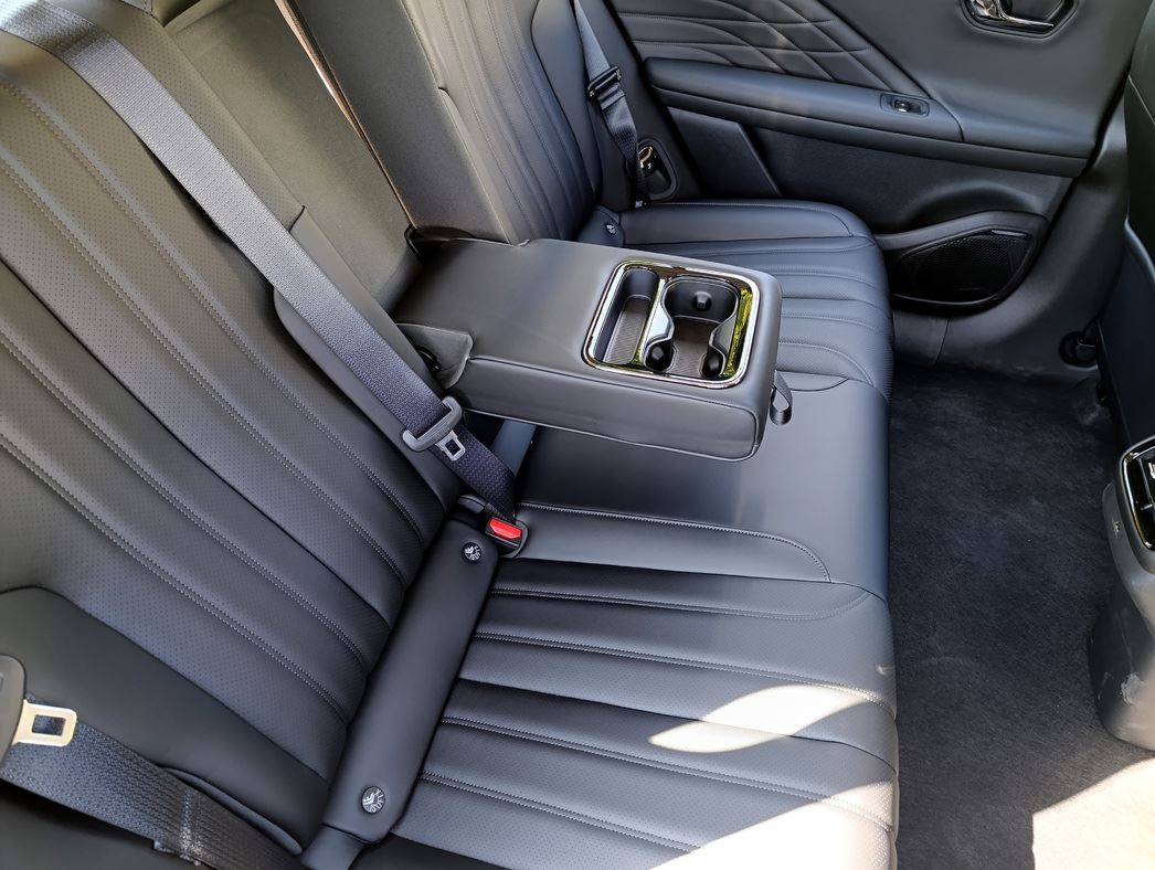 Оценил я и задний ряд грядущей новинки отечественного рынка. Из-за того, что у машины большая колесная база, а пол ровный, места для ног много. В спинки передних кресел вмонтированы столики, есть широкий подлокотник с подстаканниками и дефлекторы вентиляции. Думаю, в дальней дороге пассажиры не устанут.