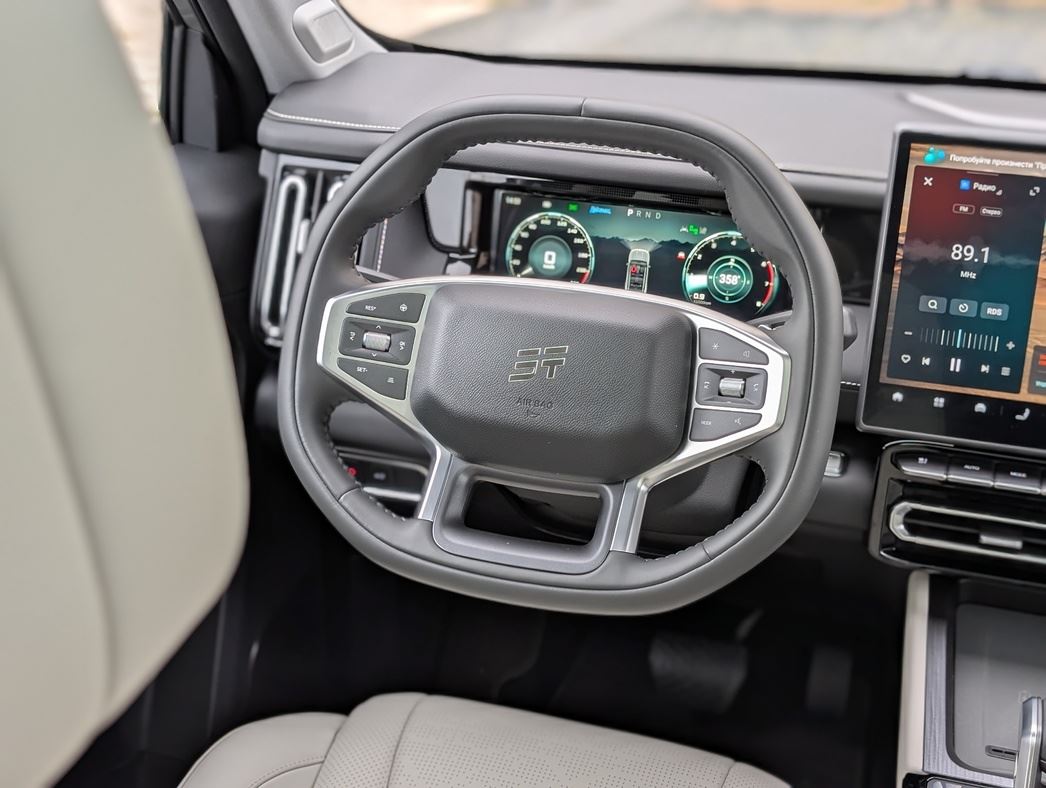 Садишься за руль большой машины, но ощущения, что управляешь строительным катком, не возникает от слова совсем. T1 послушен и ловок. Отчасти это заслуга облегченной конструкции — T1 весит на 100 кг меньше Т2. Да и колеса здесь поменьше — 235/60 R19 против 255/55 R20. Ну и, понятное дело, свою лепту вносит типичная легковая подвеска: спереди — McPherson, сзади — многорычажка.