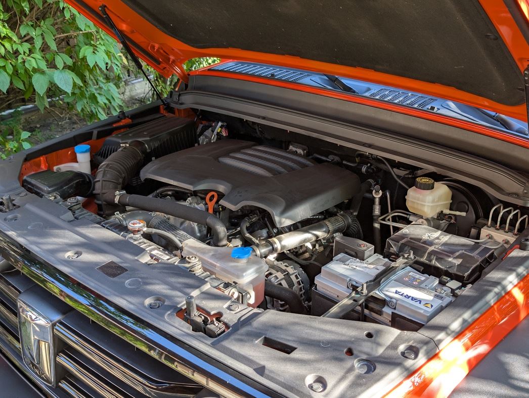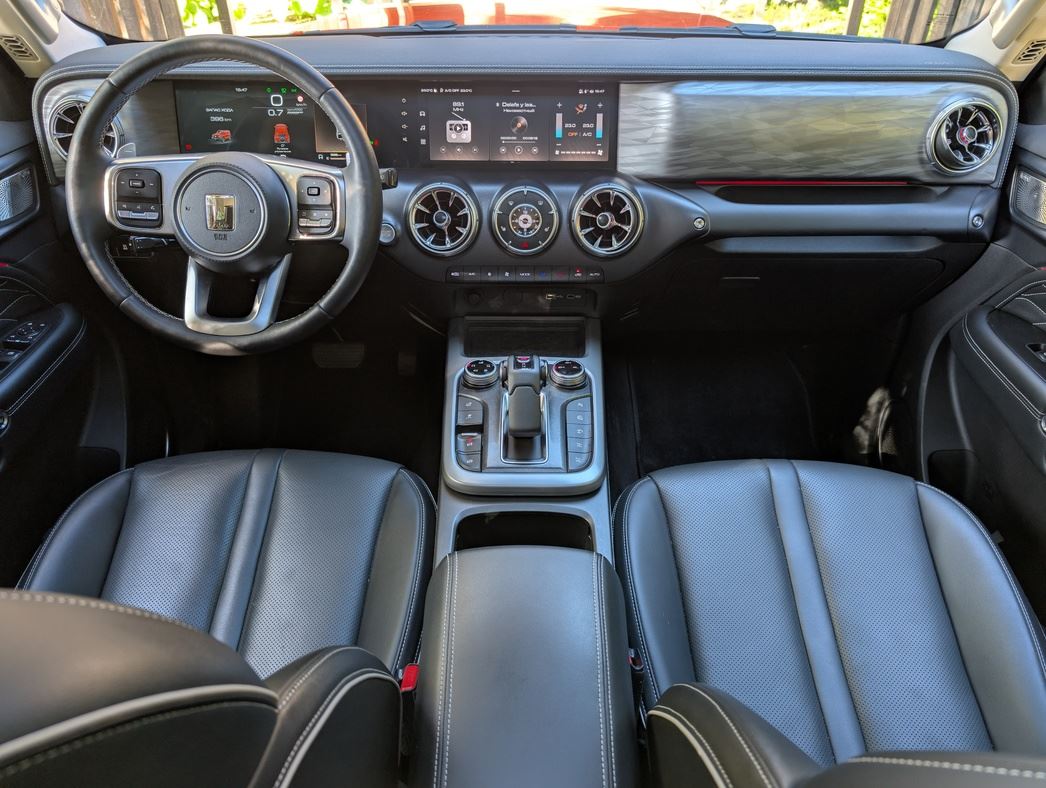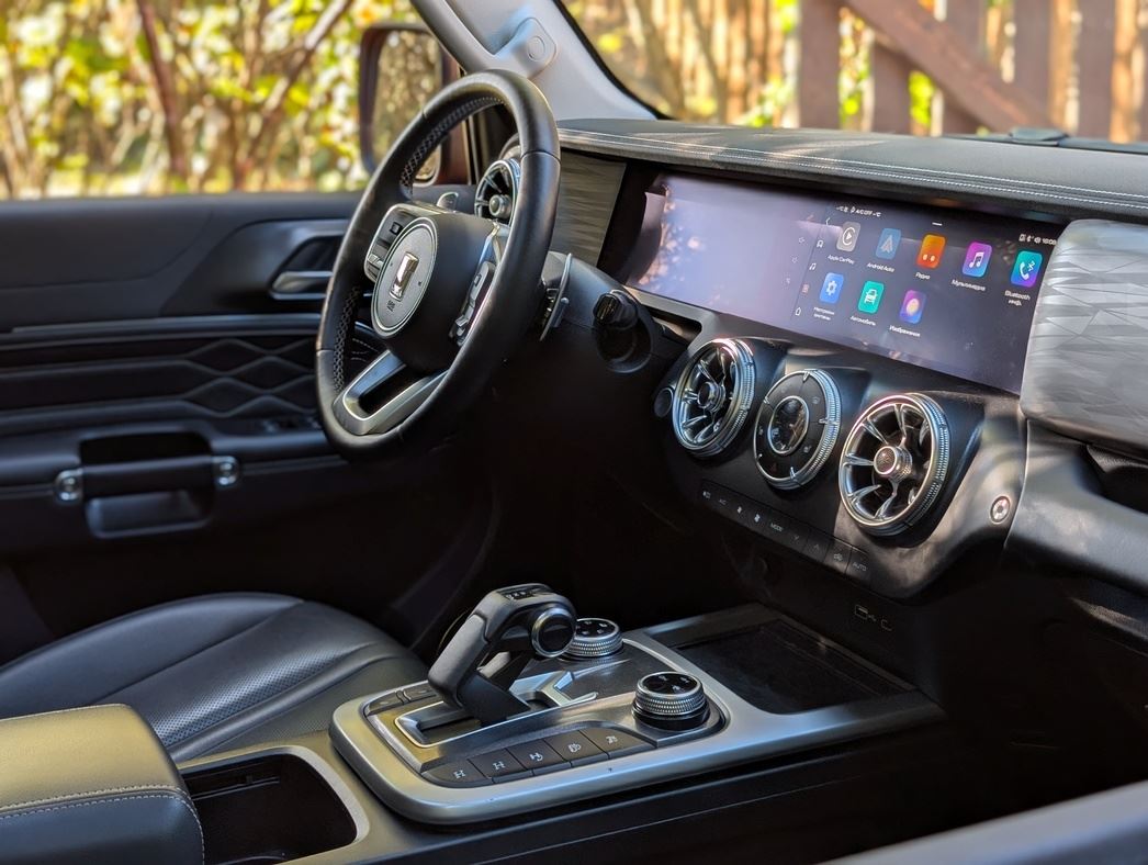 Сердце Tank 300 — бензиновый турбомотор на 2 литра (224 л.с., 387 Нм), в паре с ним работает 8-диапазонный «автомат». Старт со светофора уверенный, тяга доступна с самых низов, коробка переключается плавно и практически незаметно. Но этот силовой агрегат создавался явно не для спринтов, а для марафонов (например, путешествий) или бездорожья, где важна не мощность, а тяга.