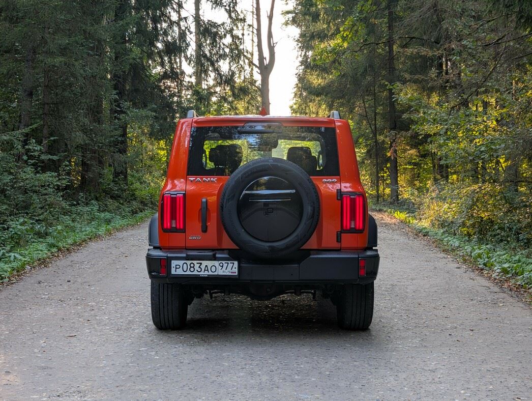 Подойдет ли вам Tank 300 для повседневной эксплуатации в городе? Если не любите привлекать внимание, то однозначно нет. По-серьезному же — вполне. Единственное — нужно быть готовым к трудностям при парковке в условиях тесных дворов. Автомобиль широкий — без малого два метра. А запаска, вынесенная на пятую дверь, добавляет 13 лишних сантиметров к длине. И хотя камера заднего вида располагается как раз на колесе, все равно нужно время, чтобы привыкнуть.