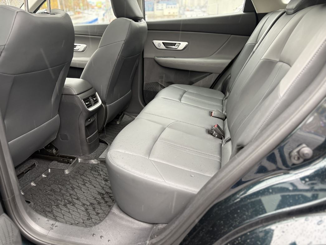 На диване легко и непринужденно разместятся трое: его регулирующаяся по наклону спинка и отсутствующий как класс центральный тоннель (машина-то исключительно переднеприводная) им в этом помогут. Правда, подушки сидений тут по-китайски коротковаты и лишены подогрева, хотя дефлекторы воздуховодов присутствуют. Ну и еще можно посетовать на явный дефицит USB-портов: в наличии только один.
