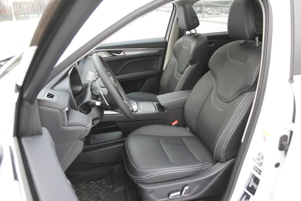 Подушки передних кресел у HC как мы привыкли — в самый раз — не такие короткие, как у Jolion. Колени ни разу не на весу. К тому же диапазон продольной электрорегулировки водительского сиденья у отечественного кроссовера гораздо длиннее, что позволяет комфортнее устроиться за рулем. Еще один важный плюс — имеющийся здесь поясничный подпор с электрорегулировкой, недоступный для Jolion даже в топовой версии.