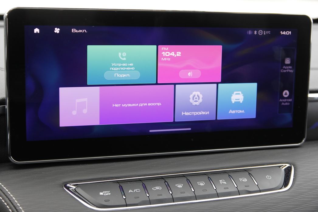Правила хороших манер Solaris выглядят, как ответ на модный приговор Jolion. Пусть материалы отделки в HC проще, но, с другой стороны, практичнее. Двухцветный салон с выраженными благородными акцентами коньячного оттенка выглядит конструктивно, красиво, но в то же время не навязчиво. И, несмотря на обилие физических кнопок и «крутилок», здесь также правит бал электроника. Управлять ею зачастую можно интуитивно, не залезая пальцами в экран мультимедиа. При этом центральный дисплей лишь самую малость уступает по размеру «хавейловскому», но тоже весьма изрядный.