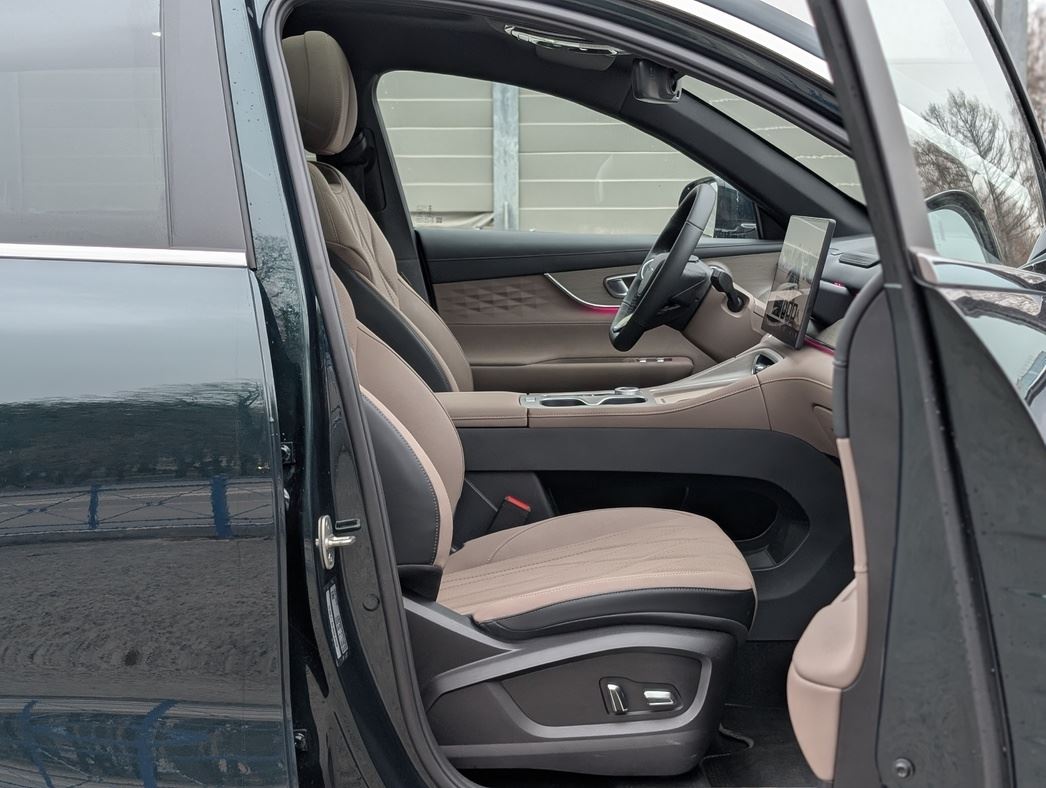 Хотя передние кресла — спорный момент. Они мягкие, с вентиляцией и подогревом, но подушка для рослых людей коротковата. А вот спинка высокая, поддержка поясницы есть. Плюс электропривод в настройках. Обзорность с «капитанского» места — отличная.