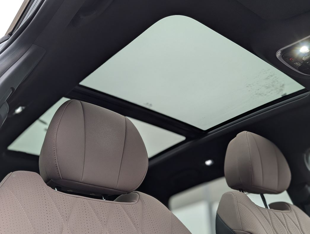 Передний же пассажир может слегка загрустить: регулировки по высоте у его кресла нет, оттоманки и массажа — тоже. А вот второй ряд — просто песня. Диван раздельный, с регулировкой угла наклона спинки и продольным ходом. Места для ног — вагон, есть подогрев, USB, свои дефлекторы. Над головой — огромная панорамная крыша.