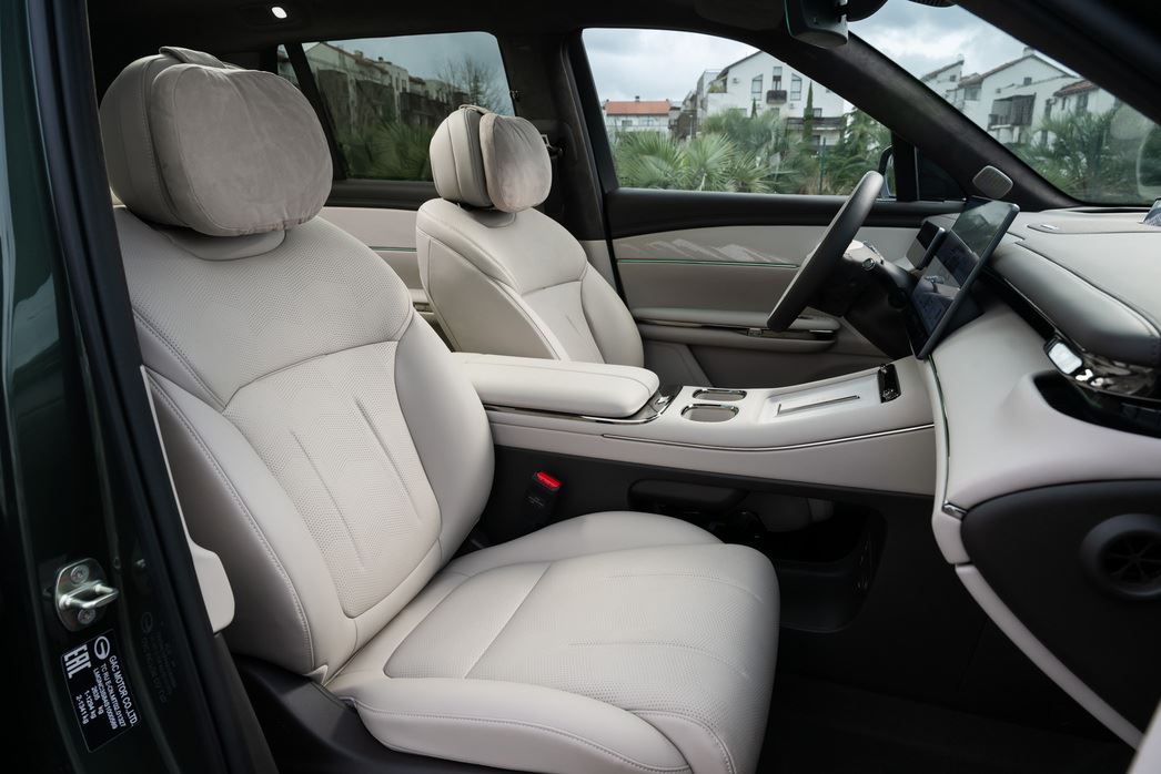 Эффект удержания взгляда пролонгируется интерьером: там 30 квадратных метров натуральной кожи, алькантары и замши, которые приведут в исступление и экстаз самых тактильных экспертов. Переработанный пластик, которым китайцы так любят обтягивать «баранку», в прошлом — даже на ощупь материал отделки «штурвала» сравним с некогда премиальными европейскими брендами.