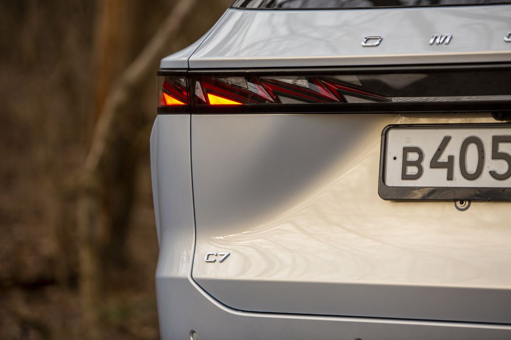 Машина получилась просторной: и с точки зрения упитанного водителя, и для заднего пассажира. В плечах, в ногах, «в голове», читай, под потолком — места с избытком. И этот фактор — единственный, где нет гротеска: кроссовер C7 изначально задуман автомобилем семейным, в котором и на выезд, и по будничным делам с комфортом поедет много пассажиров.