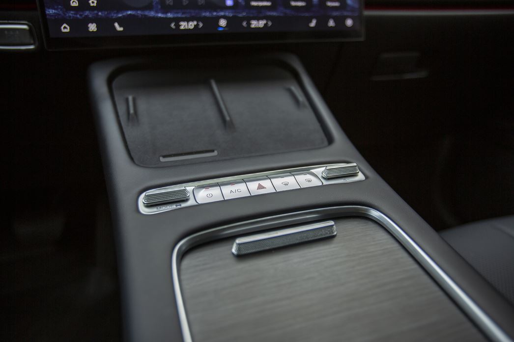 Кроссовер C7 будто скроен из противоречий: на фоне кричащей внешности — достаточно строгий, если не сказать чопорный, салон. Исключительный черный, фактически полное, кроме накладок на руле, отсутствие набившего уже мозоль на глазах рояльного лака. Скромный, если не сказать большего, экран приборной панели и огромный, размером с телевизор, 15,6-дюймовый планшет мультимедиа.