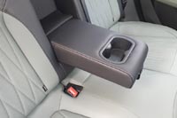 На втором ряду просторно, посадка удобная. Сиденья отформованы для двоих пассажиров, но по ширине места хватит и троим. В центре есть откидной подлокотник с двумя подстаканниками.