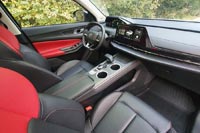 Красные вставки на спинках сидений и дверных картах оживляют черный салон, но кому-то могут показаться аляповатыми. Передние сидения с интегрированными подголовниками и развитой боковой поддержкой. Подобрать удобную посадку легко, водительское кресло регулируется электроприводами в 6 направлениях, а сидение переднего пассажира в четырех. Рулевая колонка настраивается по вылету и по углу наклона.
