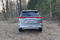 Штурмовать бездорожье на Exeed VX я бы не рискнул, несмотря на отдельные пресеты, предусмотренные бортовым компьютером. Клиренс в 200 миллиметров — не самый худший показатель, однако часть его «съедают» ненужные выдвижные подножки у порогов. Да и массивные свесы не провоцируют на внедорожные приключения.