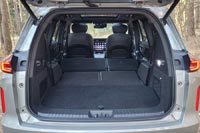 Багажник при всех поднятых креслах невелик, но несколько дорожных сумок сюда войдет легко. Нужно больше пространства? Жмем кнопки на стенке — и в ровный пол складываем кресла электрическим приводом. В тесном подполье — сабвуфер и органайзер с инструментами. Запасное колесо расположено снаружи.