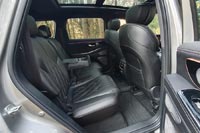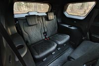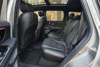 Диван второго ряда делится на части, которые ездят вперед и назад с солидным диапазоном. Запаса «воздуха» хватает по всем направлениям. Спинки настраиваются по углу наклона. Свои настройки есть даже у боковин подголовников — как в самолетах. На третьем ряду удобств поменьше, зато с пространством проблем нет. Там без нервов разместятся и взрослые.