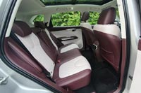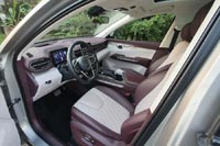 Двухцветный интерьер получился стильным и светлым, благодаря большой панорамной крыше с люком. Качество отделочных материалов высокое. Установлен двухзонный климат-контроль. Передние кресла с электроприводом удобные. У обивки из экокожи есть перфорация, подушки регулируется по углу наклона. В максимальной комплектации предусмотрена память регулировок водительского кресла.