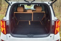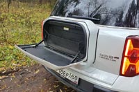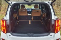 При сложенных креслах третьего ряда получается вместительный багажный отсек. Под полом предусмотрен отсек для мелких предметов. Плохо, что нет шторки или полки багажника. Докатка закреплена под днищем кузова. Кресла второго третьего ряда складываются в ровный пол, образуя ровную площадку размером 2030х1200 мм. Процедура складывания третьего ряда полностью электрифицирована.