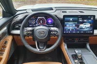 Эргономика отличная, круглый руль с широким ободом и физическими кнопками хорошо ложится в руки. Селектор управления автоматической коробки передач на привычном месте – центральной консоли. У цифровой панели приборов с экраном размером 12,3-дюймов удачная графика, также основные параметры проецируются на лобовое стекло. 14,6-дюмовый дисплей мультимедийной системы выглядит несколько чужеродно, но надо отдать должное – графика современная, иконки и надписи крупные, быстродействие хорошее.