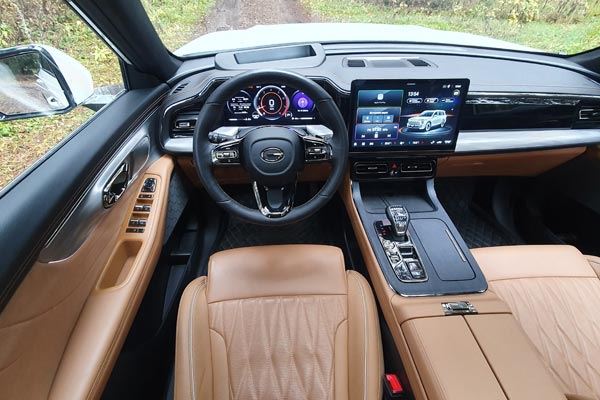 Уже в базовой комплектации GAC GS8 очень хорошо оснащен (трехзонный климат-контроль, адаптивный круиз-контроль, кожаный салон, электропривод и вентиляция передних кресел, полный набор зимних опций, датчики парковки спереди и сзади и камера заднего вида). Начиная со второй комплектации, добавляется система кругового обзора. В дорогих версиях арсенал средств активной безопасности заметно шире.