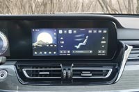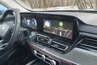 Приборная панель Hongqi слита с головным устройством в единый блок. Картинка не верх совершенства, но шрифты читаются хорошо. Есть система кругового обзора, протоколы Apple CarPlay и Android Auto. Сенсорный дисплей мультимедиа расширил свои полномочия, но поглотил не все опции. Из нужных сюда, например, зашили подогрев и вентиляцию сидений.