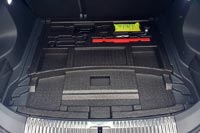 Крышка в «подполье» неожиданно открывается со скрипом. Внутри всё стандартно: органайзер и запаска-костыль, обернутая вокруг сабвуфера аудиосистемы. Но рядом — голый металл. Хотите получить приличный звук «саба», придется потратиться на дополнительную обивку — если вы меломан. В целом же, звук у штатной музыки неплох, да и к шумоизоляции салона вопросов нет.