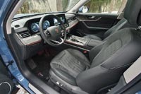 Отделка интерьера хороша — мягкий пластик, прочная кожа. Передние сиденья «заточены» скорее под стройных седоков. Нижние подушки длинные, бедра не висят в воздухе, как в большинстве китайских машин. У баранки есть не только подогрев, но и электрические настройки по вылету и высоте. Это плюс в премиальную карму.
