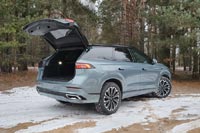 Заднее стекло узкое, подголовники массивные, поэтому обзорность не очень хорошая, но выручают камеры кругового обзора и парктроники спереди и сзади. Автомобиль оснащен полным комплектом зимних опций. На машине установлен адаптивный круиз-контроль, но настройки у него не очень удачные. Кроссовер держит большую паузу при трогании, вяло разгоняется, а иногда и вовсе не замечает препятствие.