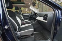 После модернизации качество материалов отделки салона стало чуть лучше. Накладка на передней панели и дверные карты из мягких материалов. Но все равно в интерьере много дешевого жесткого пластика. Перчаточный ящик и зеркальца в солнцезащитных козырьках без подсветки, потолочные ручки без микролифта.