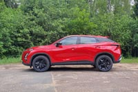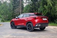 По периметру кузова – практичный обвес из черного матового пластика, который эффектно выглядит на тестовом автомобиле красного цвета