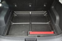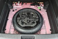 Багажный отсек не особо вместительный. Но проем широкий, колесные арки почти не ограничивают объем. Дверь – с электроприводом, есть розетка на 12 В. Спинки складываются в горизонт. Но странно – под ковриком органайзер для полезных мелочей и докатка, хотя на ранних машинах здесь было полноразмерное запасное колесо. Экономия на спичках?
