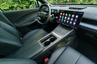 Довольно странное решение, что экран приборной панели небольшой, размером 8,9 дюймов и на нем многие символы не разглядишь, а дисплей мультимедиа – наоборот огромный с диагональю 15,6 дюйма. Хорошо, что на центральной консоли остался элегантный блок физических кнопок, они отвечают за включение аварийной сигнализации, обогревы стекол, активацию климат-контроля. Здесь же две клавиши выбора ездовых режимов электроники и регулировки громкости мультимедиа. Однако большинство зимних опций и даже регулировка боковых зеркал осуществляется через мультимедийную систему, что неудобно и небезопасно.