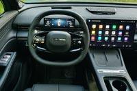 Показатели вроде бы неплохие, но снаряженный вес у полноприводной версии 1753 кг. Поэтому динамика не впечатляет, от 0 до 100 км/ч автомобиль разгоняется за 10,4 с (переднеприводная версия на 100 кг легче и разгоняется на 1 с быстрее). Смена ездовых режимов почти ничего не дает. Зато похоже у машины действительно хорошая аэродинамика, средний расход топлива за время теста составил 8,3 л на 100 км – отличный результат для тяжелой полноприводной машины. Оптимально настроена подвеска, крены в поворотах минимальны, при этом неровности автомобиль проходит почти незаметно. Хороший уровень акустического комфорта, в передних дверях установлены двухслойные стекла.
