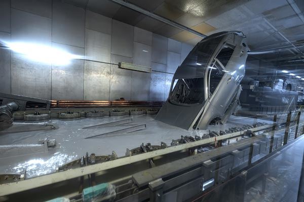 Случайно выбранные автомобили попадают в лабораторию проверки качества для дополнительных испытаний. Здесь проходят тесты геометрических параметров кузова, равномерности зазоров между кузовными элементами, испытания на вибростенде и другие типы контрольных операций, которые позволяют гарантировать качество произведенных автомобилей, выявить и оперативно устранить возможные проблемы.