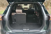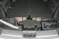 Дверь багажного отсека с электроприводом. При сложенном третьем ряде кресел места для поклажи много. Под полом есть органайзер для мелких предметов. Докатка размещается в заднем свесе под днищем, и не ограничивает объем багажного отсека. Сиденья второго и третьего ряда раскладываются в ровный пол.