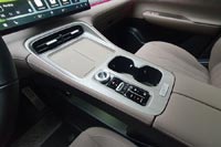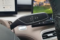 По центру – «телевизор» с диагональю 15,6 дюймов. Быстродействие у него хорошее, картинка с камер кругового обзора четкая. Есть беспроводная зарядка для смартфонов, но она рассчитана только на большие аппараты, телефоны среднего размера сдвигаются во время движения на скользкой площадке и перестают заряжаться.