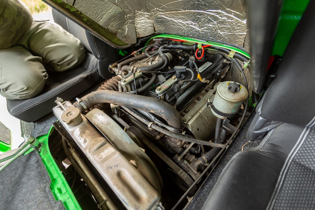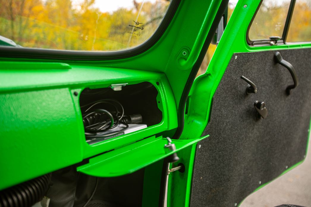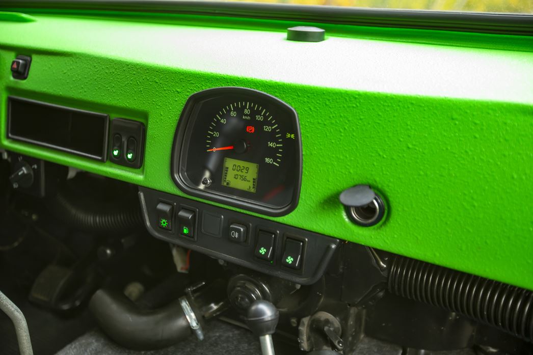 Небогатый, скажем вежливо, ассортимент приборов, представленный единственной шкалой в центре, немногословен, а торчащие патрубки печки не справляются с созданием «погоды в доме». Печек, кстати, тоже две: для пассажиров заднего ряда — отдельная. За спиной у водителя еще и полноценный стол, за которым можно и дичь разделать, и штабное совещание провести, и мотор, расположенный прямо между шофером и передним седоком, отремонтировать.
