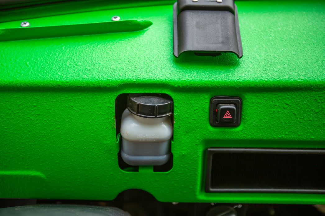 Посадка — крайне неудобная, расположиться «по-автомобильному» невозможно, приходится постоянно наклоняться к лобовому стеклу. Правой руке объективно не хватает длины, а левый локоть предательски ударяется о стекло, набивая раз за разом синяк. Набор клавиш — специфический: свет, обогрев, переключение топливных баков. Последних два: один — на 55 литров, второй — на 30. С учетом немалого, будем честны, расхода — не менее 12-13 литров в городе — актуально.