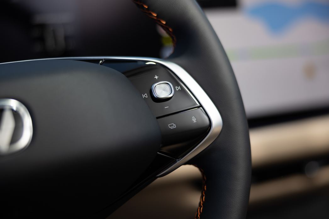 Порой забываешь и том, что селектор коробки передач тут не в традиционном месте, а под рулевой колонкой. Поначалу это даже вызывает лёгкий ступор: рука тянется к центральному тоннелю и находит там пустоту. Но довольно быстро осваиваешься, одобряя такое решение. Освободившееся пространство заняли подстаканники и площадка для пары смартфонов — левая половина с беспроводной зарядкой мощностью 50 Вт с охлаждением. Она, кстати, реально «напитывает» мобильник быстро, и телефон при этом не превращается в раскалённую сковородку — проверяли специально.