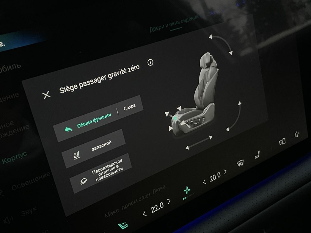 Полный зимний пакет включает в том числе подогрев всех кресел и руля, причём управление выведено на честные физические кнопки — не нужно продираться через дебри меню в поисках нужного пункта. Есть вентиляция и массаж. А переднему пассажиру доступна оттоманка и «нулевая гравитация»: с одной стороны, маркетинговая уловка, с другой — возможность вытянуться и подремать с комфортом в перерыве во время длинного перегона. В общем, в плане обустройства никаких нареканий.